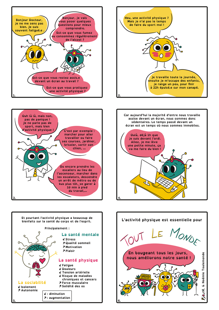 Noémie Toulemonde - médecin généraliste - activité physique - BD - Vulgarisation - Djoune Illustrations - Justine Gisdal Molron